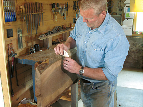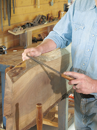 Then he smoothed the irregular surfaces with a curved card scraper. His goal was to preserve these free-flowing edges.