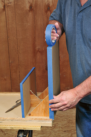 Finally, apply a layer of masking tape to the top edges of the strips, back and middle brace, to keep glued parts from sticking to them during assembly.