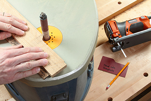 You’ll want to make a test piece for dialing in the cuts required to make the top support tenons and a separate test piece for cutting the center/bottom support tenons — the tenon positions vary because of the cloud lift shape on the wider top support.