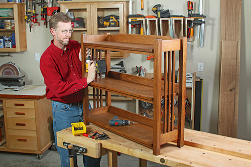 There seems to be a cyclical nature to shop sizes — most woodworkers start small when they take up the craft, then end with small shops again late in life. But small shops and the smaller benchtop machines that suit those spaces shouldn’t keep a woodworker from continuing to build substantive and challenging projects. This compact Stickley-inspired three-shelf bookcase is designed with mortise-and-tenon joinery and detailed with cloud lifts, slatted accent stiles and pyramid-topped legs.
