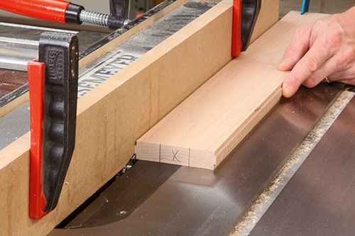 Before you can get down to some assembly, load the dado blade back in the saw and set its width carefully for cutting dadoes across the shelf supports to house the crosspiece. Plow them 3/8″ deep and centered on the part lengths.