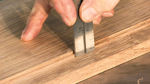 Because the design, the Drawings and the Material List are provided here, the first step of consequence is harvesting the parts. If you are unfamiliar with that term, it refers to carefully going through the wood you have collected for your project and determining which piece of wood will go where on the project. For example, in this project, the infill pieces on the side panels were each made from one piece of wood with a very attractive figure running from the top to bottom. Because they are so large and so prominent, putting a plain-looking piece of wood in the side frames would leave the bookcase looking bland. In the same fashion, the top will be highly visible and needs to be composed of stock selected for its beauty. Taking the time here to select these pieces in advance can take your project from soso to something special. Identify the parts with chalk markings so you won’t lose track of them. This is also the time to butt join the pieces that will become the top, the shelves and the bottom. They are too wide to be made from a single width of stock.