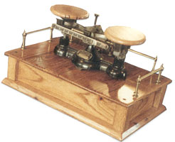 This entire project was born of resucues of items from yard sales and flea markets. The scales were a two dollar investment at a garage sale. Their original porcelain tops were missing, or damaged, so I replaced them with oak. I built the box from scrap oak. Then I installed the brass rails obtained from a flea market just to add a bit of contrast.