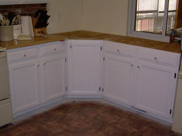 “I made the corner cabinet complete with a lazy Susan, hardware from Rockler inside, and also made the base cabinet under the window when I remodeled our kitchen. I even matched the drawer and door profiles (pretty close) on my table saw (couldn’t find a router bit to match). First time I’d ever made cabinets! The toughest part was trying to get it into a pretty out-of-square corner! I enjoyed building them!” – John Stroh