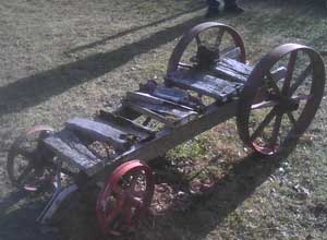 Here is a cart I rebuilt for a friend of mine. It is about 100 years old. It was used to transport small gas motors around to run different appliances with a belt drive like a washing machine or water well. It took about two weeks to complete
