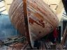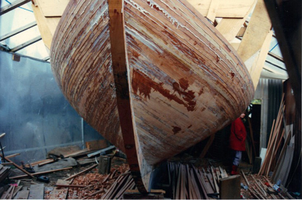 It was a daunting project to start with, but once construction had past the frame up stage, and planking had begun, it was a piece of cake. I would recommend boatbuilding to all members of this Forum, as being very therapeutic, and needing only a few basic tools, and a good eye. A plum bob, and a spirit level are needed to set up the frames, but after that it is mostly eyeology. I never did get to sail the yacht, but did give it sea trials with motor only, as I had to sell up because of matrimonial problems. One picture is during the planking stage and one is waiting on the tide to rise and float her away.