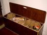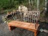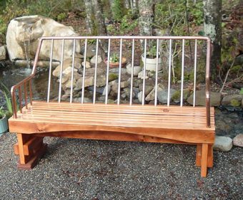 The other is my garden bench. Our new house had a large carport. It held water, but that was all it was good for. It was 3′ over the property line, and looked ugly compared to the 1934 house and old Model A garage it was attached to. I spent a day tearing it down, hoping to salvage as much wood as possible. This bench was made using only one of the many 20′ 2 x 10 boards that made up the rafters of that carport. The backrest is copper pipe, and is developing a nice patina as it ages. I have since made two more benches, and have enough boards left for three more.