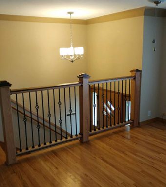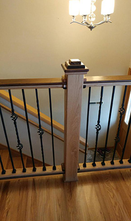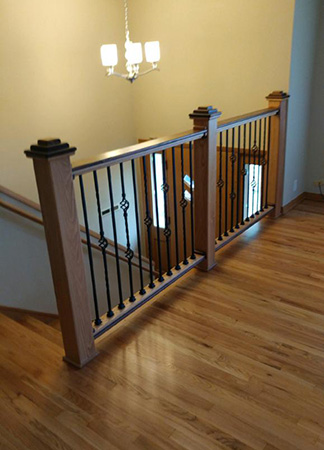 I built this railing system for my son and his fiancée’s new home in Cedar Rapids, Iowa. We designed this system to use Red Oak as the base material, and then chose walnut for the top and bottom accents. The Zebra wood top accents on columns were my new daughter-in-law’s idea. This a fun build and tested my skills.