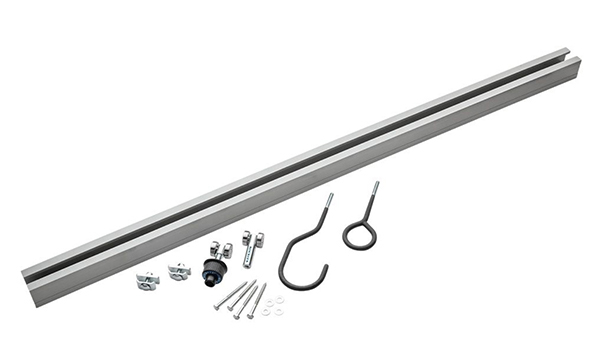 This Starter Kit is a convenient way to start enjoying the benefits of the Rockler’s new Ceiling Track System. It includes all of the key components, providing a base from which you can easily expand. You get a 4-ft. length of ceiling track with mounting hardware that accepts the kit’s two rolling trolleys — one that rolls but can be locked in place, and one that rolls freely. A ring hook and 2-1/2-in. J-hook attach to either trolley. Two track end stops are included to capture the trolleys inside.