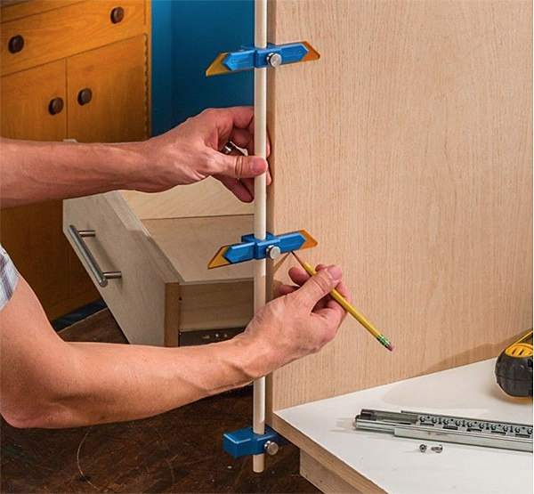One way to avoid measuring twice but still getting it wrong is to avoid using a tape measure whenever possible. That’s why many cabinetmakers and woodworkers have long used story sticks instead of tapes and memory, for transferring repeated measurements to carcasses and other project parts. But, better than scratching notes on a wooden stick, Rockler’s new Story Stick Kit provides four pointed indicators with metal thumbscrews, plus a rectangular end stop. Just slide and tighten them onto a 1/2-in. dowel or square tubing, a Rockler T-track or a strip of 3/8- x 3/4-in. scrap of wood, to indicate the positions of face frame rails, shelf dadoes and other repeating project features. Since the indicators are fixed, there’s no risk that your layout marks can change.