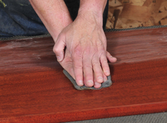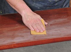 1. Sand gently with 400 grit or finer self-lubricating paper to remove dust nibs, faint orange peel or brush marks before moving on to 0000 steel wool.