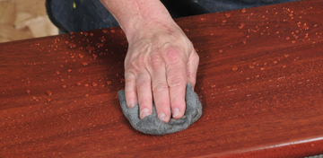 3. Load a pad of 0000 steel wool with paste wax, The wax acts as a lubricant for the rubbing process and helps create a more consistent and better looking surface than dry steel wool.