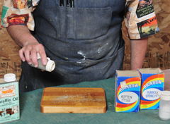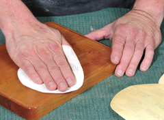 6. Open and refold the pad to expose a new surface whenever the first one dulls, and add more paste wax as needed.