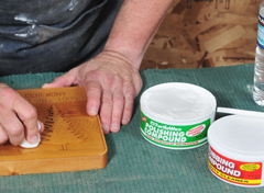 14. If you prefer traditional materials to automotive compounds, use light oil mixed with pumice, which comes in various grits. After the finest pumice grit, switch to rottenstone.