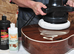 15. Should you prefer power to elbow grease, the electric buffer and polishing compounds you use on your car will also work for wood finishes, and make quick work of buffing larger areas. Be careful near edges, and use light pressure to avoid burning the finish.