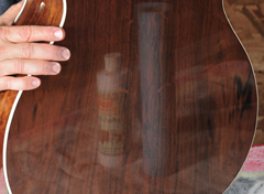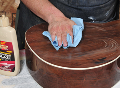 10. With a new, clean 0000 pad, rub again carefully with the grain from end to end, but this time apply no pressure beyond the weight of your hand. When you get to the end, flip the pad over and go back for a second pass. The object is not to make new scratches, but merely to cut off the excess wax.