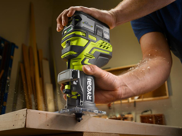 Take care of your light-duty routed profiling needs with RYOBI’s ONE+ 18V Palm Router. This compact, 2.8-lb. (without battery) cordless router with die-cast aluminum base has micro-adjustment for precise depth control. It cuts over 600 linear ft. on a single charge of an 18-volt ONE+ battery. Spinning at up to 29,000 RPM, the tool is powerful, and its collet will accept any 1/4-in. bit shank. A quick-release lever provides for easy bit changes, while the GRIPZONE overmold with micro-texture makes the router comfortable in hand. An LED light illuminates work surfaces for increased cutting visibility.