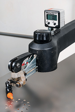 However, when precision is critical, a small digital readout with magnetic base may be preferable. It can be used with either a tilting arm or table; it’s easy to read; and it avoids the problem of parallax when viewing the scale.