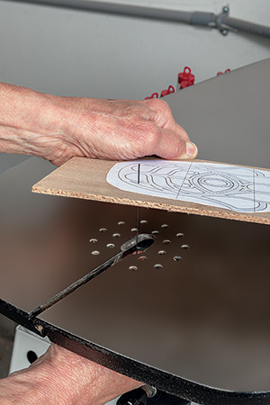 – Fretwork, in which a blade is inserted into the workpiece through small entry holes to permit the removal of pieces of varying sizes and shapes
