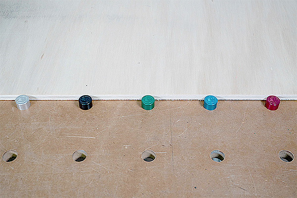 Seneca Woodworking’s Stowaway Dogs are CNC machined from aircraft-grade aluminum to precise tolerances. Sized for 20mm dog holes on the Festool MFT table, these dogs have a shallow inset that allows them to protrude 1/2 in. above the top of the table when fully seated. They’re available in packs of two with either a clear or black anodized finish for $26.95. Or, you can buy four-packs in clear, black, red, blue or green finishes that come in a foam-lined plastic storage box for $49.95.