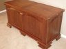 This is a sewing cabinet that I built on a commission for some friends of ours. It is made of Walnut plywood for the flat panels in the top and rear drop leaf and solid walnut for all other parts such as the raised panel door, breadboard ends, etc. It is finished in no less than three coats of satin urethane varnish and up to eight coats of varnish on high wear surfaces.