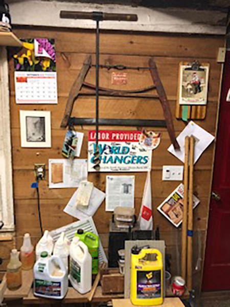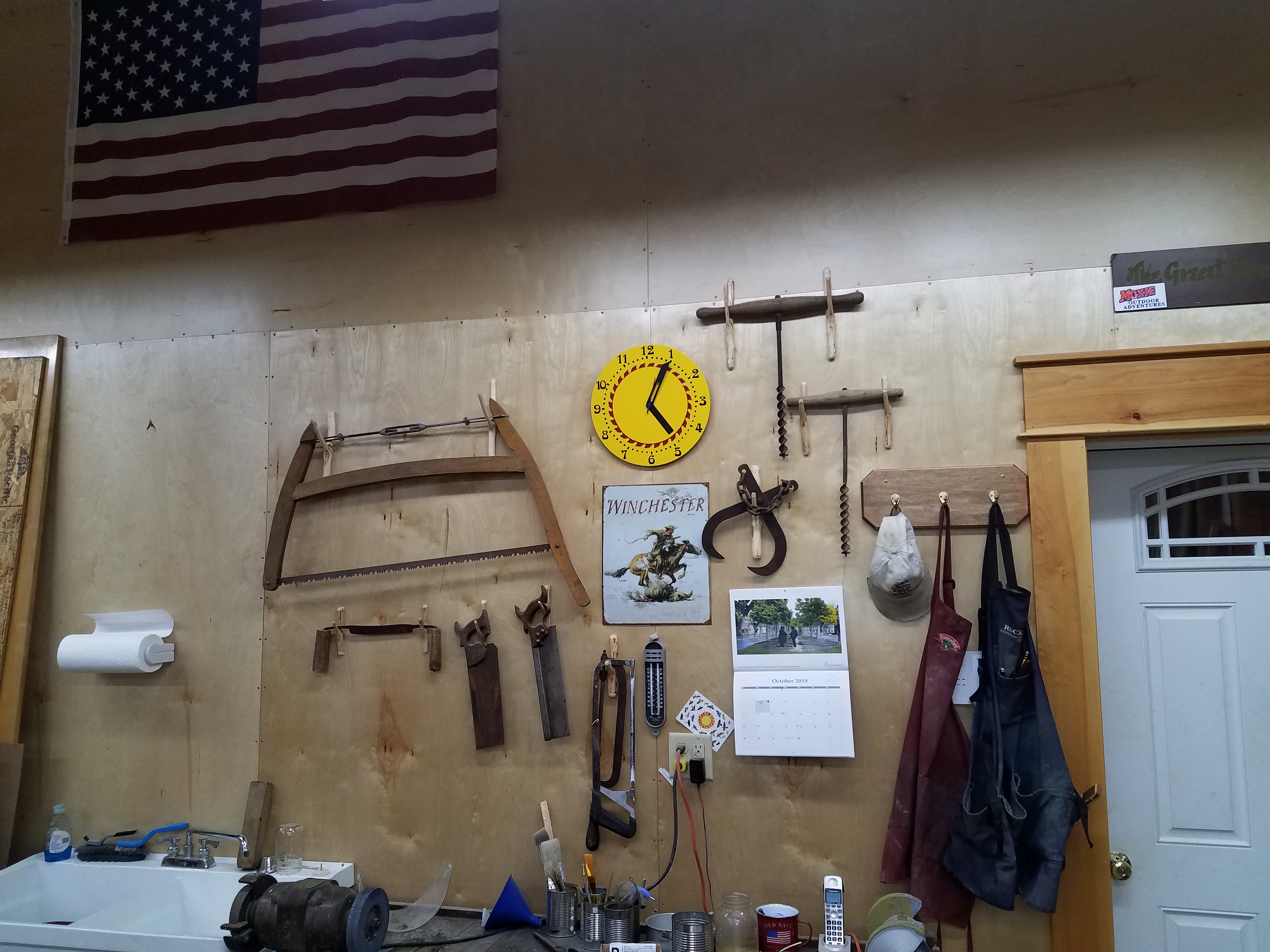 “My shop art, or ‘aht’ as we say in Maine, is a collection of old tools, as you can see in the attached picture. Some came from my dad, others came with the camp he bought, and some were gifts. Every time I hit the antique shops, I end up in the tool corner and spend time looking for tools to rehab. If I had a larger budget, I would come away with all manner of tools that have little redeeming value other than they look interesting or are unusual.” – Lee Ohmart