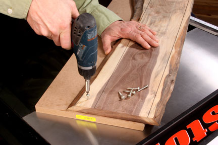 For shorter workpieces, here’s another trick to try. Mark your workpiece with a pair of lines that indicate the two rip cuts you want to make. Attach the wood to a second carrier board that already has a straight edge. In Photo 2, we’re using a piece of MDF shelving as the carrier. You can use short screws, a few brad nails or even a heavy bead of hot-melt glue to secure the workpiece to the carrier. Align the first edge you want to rip with the edge of the carrier board, driving the fasteners in the waste area opposite the first rip cut. Then run the carrier board’s flat edge against the rip fence to cut the first edge of your stock. Detach the two, and you’re all set to rip the workpiece’s second edge flat the conventional way.