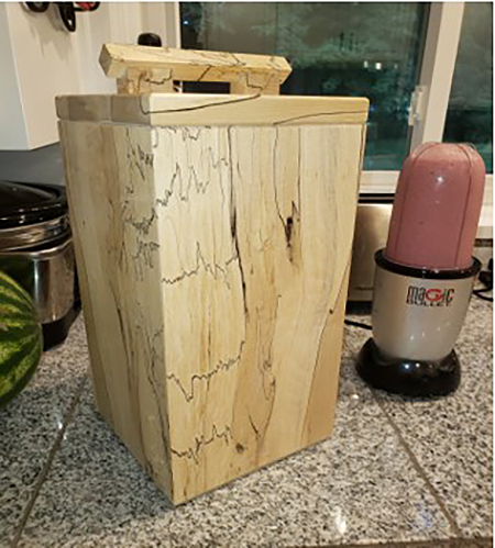 My morning routine includes making a smoothie in the blender, which would wake everybody up in the house much earlier than they liked. So I built a blender garage with sound deadening foam lining the inside walls. I used some really cool spalted maple so it is definitely a conversation starter when we have people over. I’m guessing it’s a one-of-a-kind project, which qualifies it as unusual. – Todd Wanous