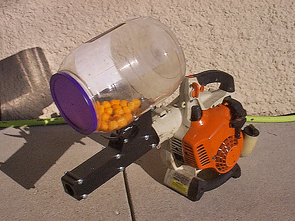 Since you didn’t specify wood, here is my most unusual project … so far. I made it on my CNC. The material is HDPE plastic. It’s an adapter for turning my leaf blower into a cheeseball gun. Neighbor kids love to catch the light poofy cheeseball projectiles. Squirrels like collecting the leftovers too. My next unusual project is a toilet paper dispenser attachment for the leaf blower. – Bob Hartig