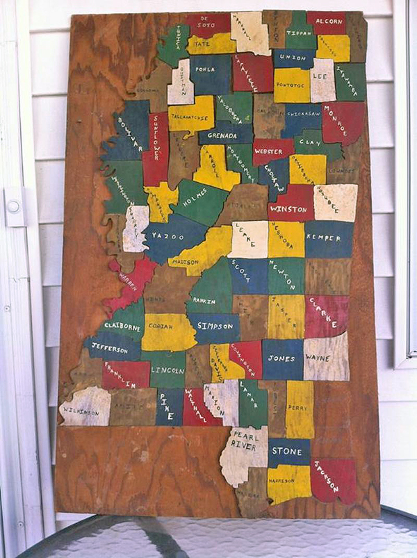 Way back in 1957 when I was in the seventh grade, our state required everyone in the seventh grade to take Mississippi history. As an assignment we had to make a project of some kind.  I chose to cut out each of our 82 counties and make a jigsaw map puzzle using 1/4-in. plywood. The map is 30 in. tall, so I made many miles of sawdust sawing out that map. Even though I was taking woodshop at school, I did all my work at home with a deep-throat coping saw that my father had. I have no clue where he found it but he found me a round coping saw blade to help with the many river boundaries that form so many of our counties. I used it until I had broken it enough times that I only had maybe 3 in. of it left. I did all the work at my father’s service station after school so he was my supervisor. I think he was as proud of it when I finished it as I was.  Over the years my map/puzzle stayed at my mother’s house and two counties became lost. Even though I have done many woodworking projects, this one stands out to be my most interesting. – Charles Buster