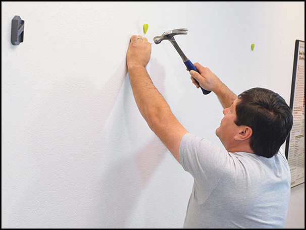 Using the StudMark is easy and straightforward: place the device flat on a wall and move it in a “Z” pattern to find a nail or screw used to hold the drywall to studs. Its magnets then snap to the exact location of the nail or screw. To mark multiple studs, place one of two green, removable magnetic markers over the spot to identify the stud’s location and then move on to find the next stud.