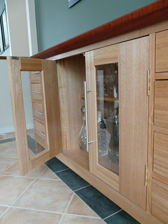 My wife decided we need a sideboard in the dining room so I got to building this one. The light timber is called Tasmanian Oak, actually a Eucalypt species (E. regnans) and the top is Redgum, another Eucalypt species (E. camaldulensis). Eucalypt hardwoods are very common in Australian timber yards.