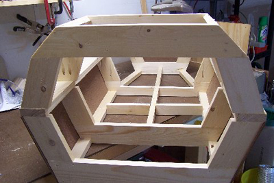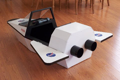I built this toy spaceship for my grandson Aiden. It has a wooden frame covered with masonite. He loves it.