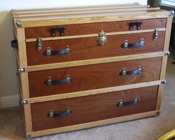 Yesterday I finished Sandor’s trunk dresser from the February 2013 issue of Woodworker’s Journal. Although I’ve built many cabinets over the years, this was the first regulation piece of furniture I tackled. As with any cabinetry, keeping corners square during the build-up is the key to keeping your sanity as well as saving “tweaking time”. Scratch one honey-do project.