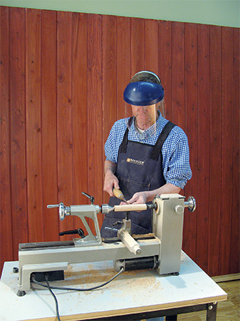 Once the blank has been threaded onto the lathe mandrel, it is time to rough it round.