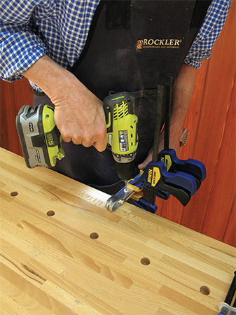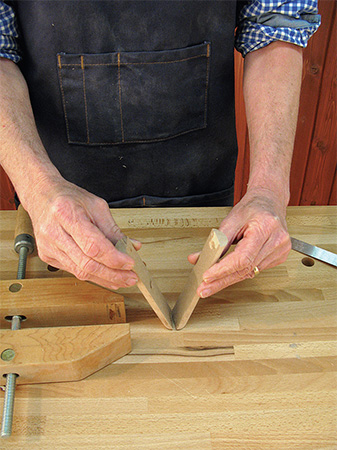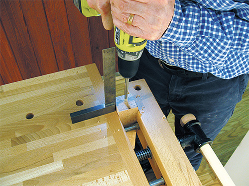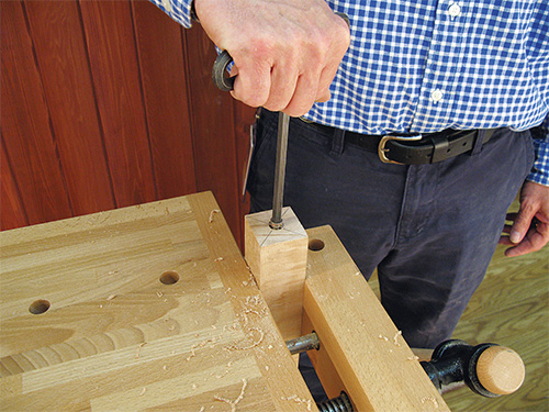 Now glue the other handle in place as you did before. This time, drill the 1/8″-diameter holes in the second blank, using the holes in the first handle as a guide.