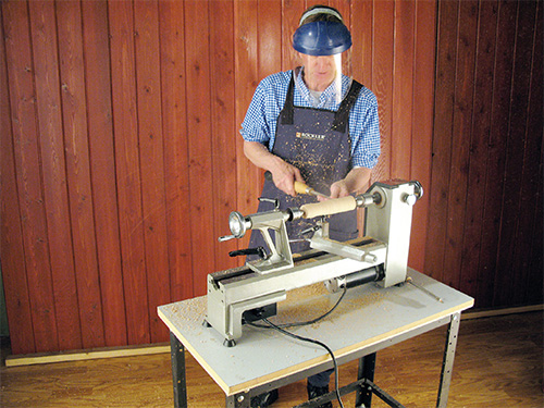 You’ve got one of your tools’ handles almost complete; thread your other blank onto the shoulder mandrel and repeat the process.