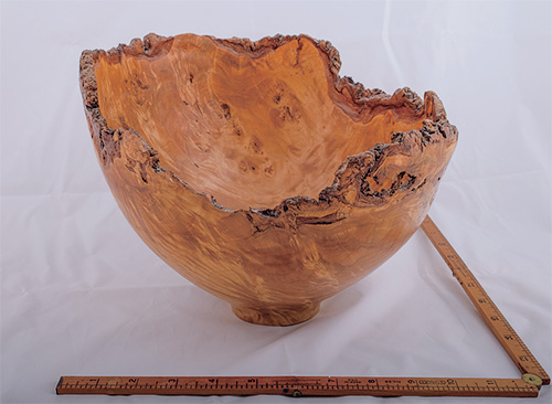 The concept of a natural edge bowl is simplicity itself; however, the execution, not so much. Cutting through the uneven edges requires precise tool control. Lack thereof results in an unnatural edge.