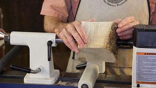 If you do choose to sand the interior of your bowl, please keep this safety note in mind: it is unsafe to put your hands inside a natural edge bowl while it is on the lathe and the lathe is running.