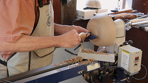 A much better plan is to screw the faceplate to the side that will be the mouth of the bowl and turn the outside first. In this case, banjo and tool-rest placement are straightforward. Using the bowl gouge to make the S curve cuts necessary to shape the bowl and foot is intuitive.