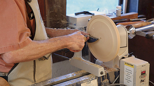 Use a bowl gouge to hollow out your bowl. Starting in the center, use a series of sweeping cuts to bring the interior to the desired shape and a uniform wall thickness. Then sand the interior, again starting with 40- to 60-grit and working to 180-grit. Now is a good time to apply the first coat of finish if you wish. I generally use an oil finish such as Waterlox or Minwax®.