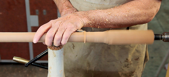 At some point, as spindles get longer and thinner, wood’s proclivity to bend over- whelms the turner. The first sign of a problem is what is called harmonic chatter: The tool rubbing against the spindle sets up a harmonic vibration in the piece that imprints a pattern of flat spots in the work, often in a spiral pattern. As you turn thinner, there will be a point where the wood buckles sufficiently that it rides up the bevel and over the tool edge — the result? A big catch.