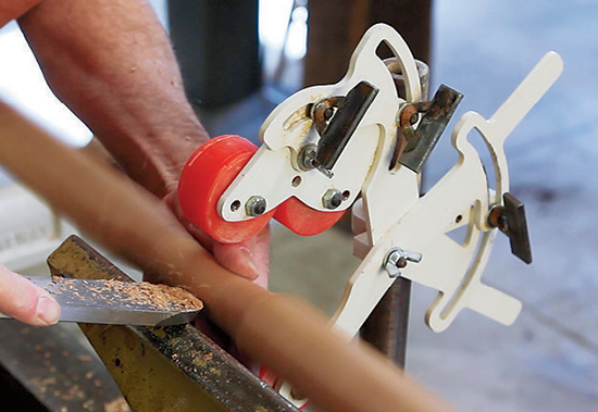 Although the skew is the tool most prone to vibration problems, it also leaves the best finish on cylinders and gentle tapers. An oval skew will work with as little as a 22° inclusive angle, while a traditional rectangular skew can be brought to as little as 25°. The skew must have a flat bevel.