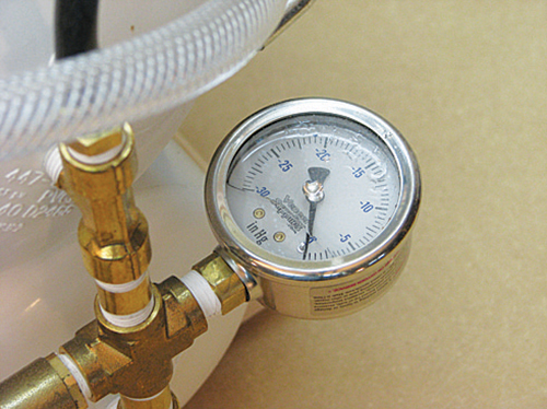 It can be set to automatically stop at a given vacuum pressure, as shown on the gauge.