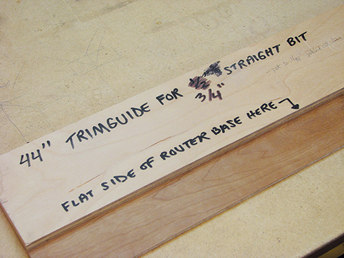 A flush-trim guide allows a router to trim the edges of several sheets of veneer at the same time.