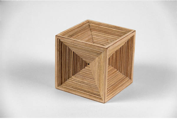 The wood she’s working with the most right now is Baltic birch plywood – in part, for financial reasons. (“Probably, if I had unlimited money, I’d be working with walnut,” she said.) But the quarter inch Baltic birch plywood also plays into her design aesthetics when she laminates separate layers together. “It has to be equal layers, so when I stack them together, all the lines are equal spacing apart,” she said. “I’m interested in how many layers that are just a tiny bit different can change an entire form of a piece. “