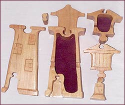 A retired high school teacher, Carol Zandell spends her time turning, carving, and designing a dizzying array of puzzle boxes, lumberjacks, whirligigs, dolls, yo-yos, tops, and gaily colored spinning, moving, and otherwise animated wood. In short, she makes toys.
