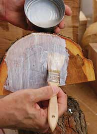 What is the preservative used to paint the ends of rough logs to keep them from splitting, and where do you get it? Can you use the same stuff to paint the ends of rough-sawn boards to prevent splitting?