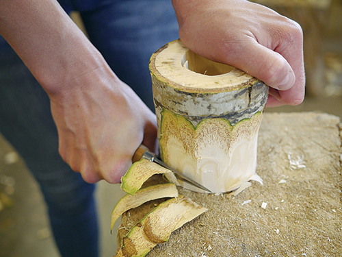 Is there an easy way to strip bark off branches that will be used as walking sticks?