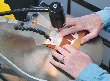 Expert advice on how to secure your paper pattern to a scroll saw piece.